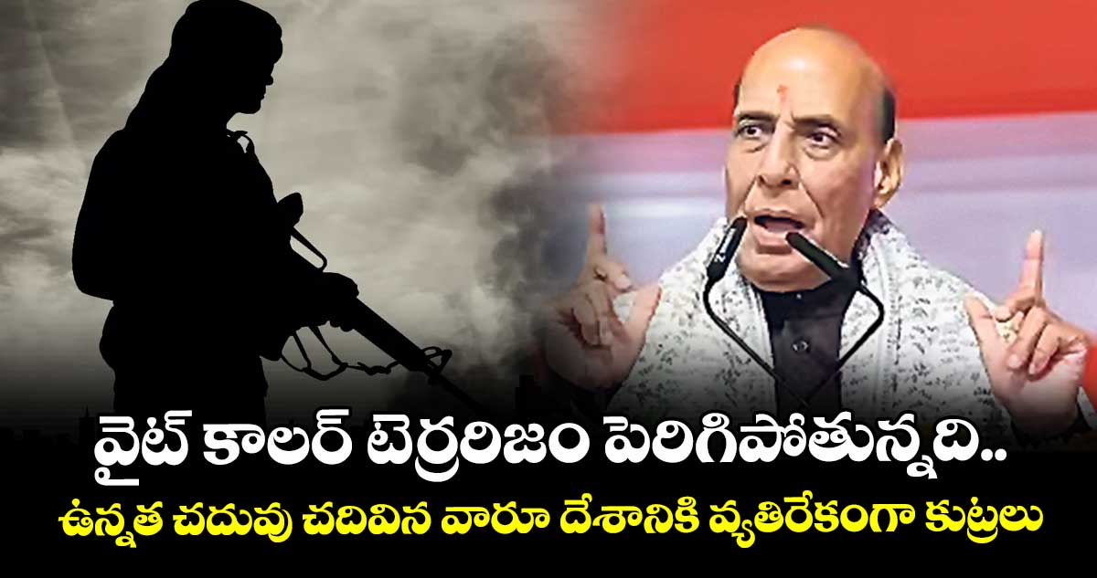 ఉదయ్పూర్: దేశంలో వైట్ కాలర్ టెర్రరిజం పెరిగిపోతున్నదని రక్షణ శాఖ మంత్రి రాజ్ నాథ్ సింగ్ ఆందోళన వ్యక్తం చేశారు. ఉన్నత చదువు చదివినోళ్లే దేశానికి వ్యతిరేకంగా పనిచేస్తున్నారని, ఢిల్లీ బాంబ్ బ్లాస్ట్ ఘటనే ఇందుకు నిదర్శనమని ఆయన పేర్కొన్నారు.