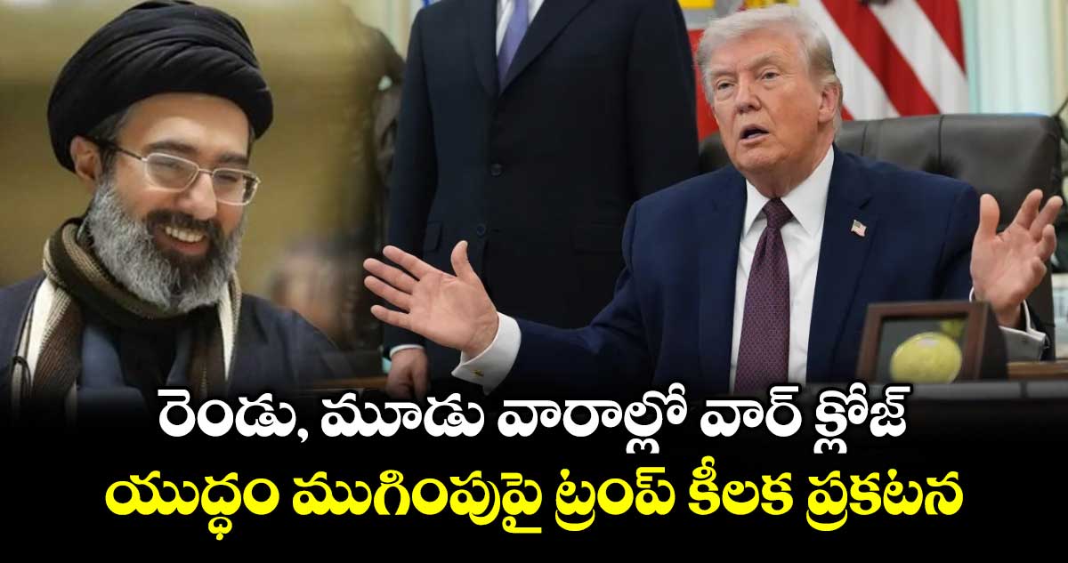 వాషింగ్టన్: ఇరాన్తో నెల రోజులకు పైగా సాగుతోన్న యుద్ధం ముగింపుపై అమెరికా అధ్యక్షుడు ట్రంప్ కీలక వ్యాఖ్యలు చేశారు. రాబోయే రెండు మూడు వారాల్లో ఈ యుద్ధం ముగియవచ్చని పేర్కొన్నారు. బుధవారం (ఏప్రిల్ 1) ఓవల్ ఆఫీస్ నుంచి ట్రంప్ మాట్లాడుతూ.. ఇరాన్తో త్వరలోనే ఒప్పందం కుదిరే అవకాశం ఉందన్నారు. యుద్ధం ముగించేందుకు అమెరికాతో అగ్రిమెంట్ చేసుకోవాలని ఇరాన్ తహతహలాడుతోందని అన్నారు.
