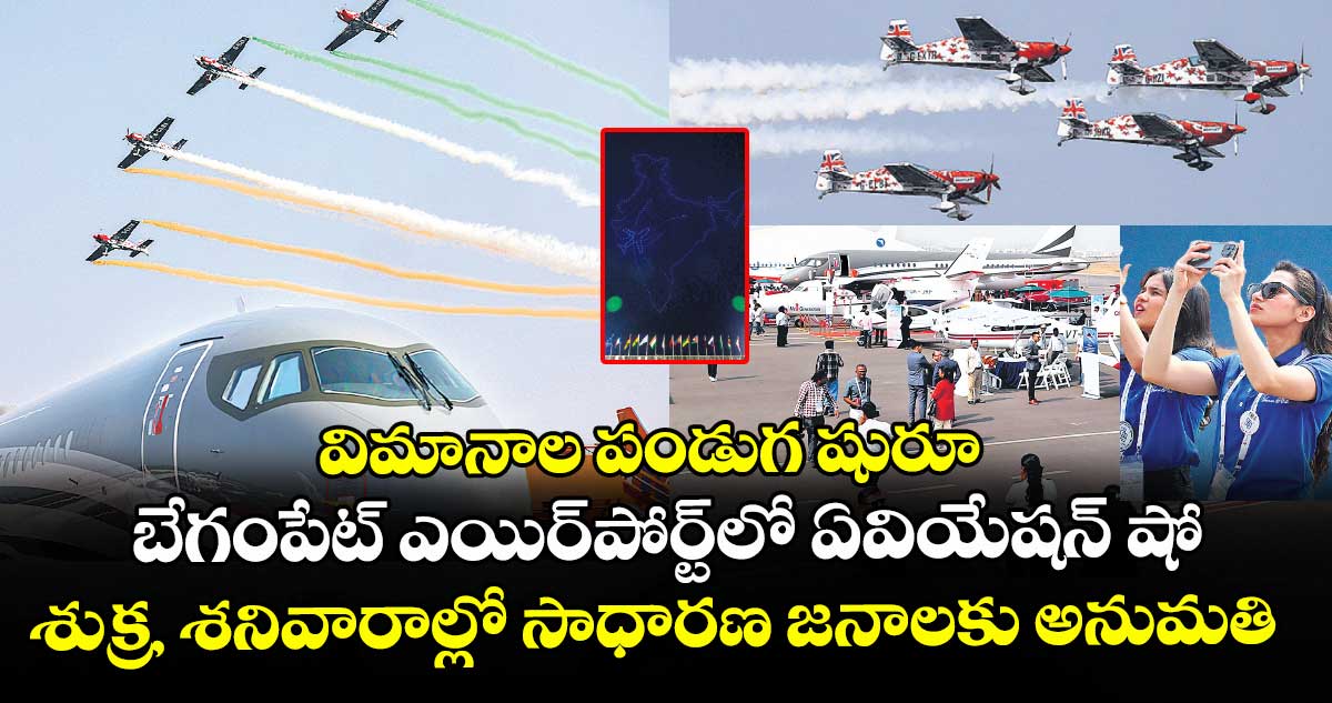 హైదరాబాద్సిటీ, వెలుగు: బేగంపేట్ఎయిర్పోర్ట్లో బుధవారం వింగ్స్ ఇండియా 2026 ఏవియేషన్ షో ప్రారంభమైంది. మొదటి రోజు సూర్యకిరణ్ ఏరోబాటిక్ టీమ్, బ్రిటిష్ గ్లోబల్ స్టార్స్ ఏరోబాటిక్ మార్క్జఫరీస్బృందం విమానాలతో అత్యుత్తమ ప్రదర్శనలు ఇచ్చారు. ప్రతిసారి లెక్కనే ఈసారి కూడా మొదటి రెండు రోజులు వివిధ దేశాల ప్రతినిధులను, బిజినెస్ఇన్వెస్టర్లను, మిగతా రెండు రోజులు సాధారణ ప్రజలను అనుమతించనున్నారు. ఈ షోలో మన దేశంతో మరో 20 దేశాల నుంచి వచ్చిన 34 విమానాలు, హెలికాప్టర్లను ప్రదర్శనకు ఉంచారు.