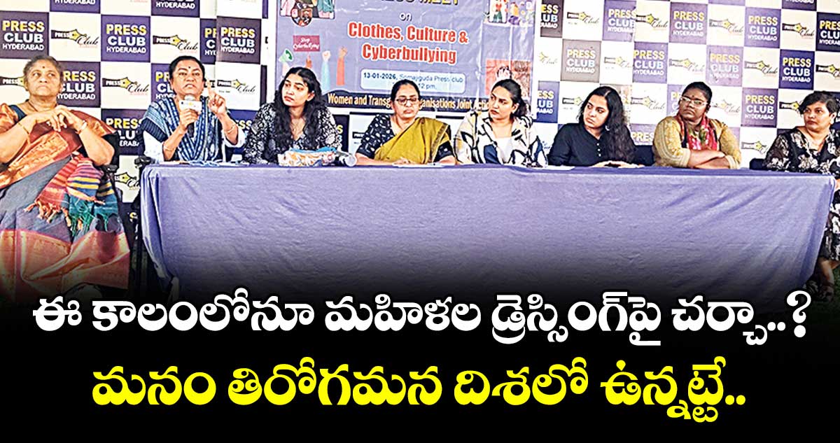 హైదరాబాద్ సిటీ/ పంజాగుట్ట, వెలుగు: ఈ కాలంలో కూడా ఇంకా మహిళలు ఏ బట్టలు వేసుకోవాలి.. ఏవి వేసుకోకూడదు అన్న చర్చ జరుగుతోందని, దీన్ని బట్టి చూస్తే మన సమాజం తిరోగమన దిశలో ఉన్నట్టనిపిస్తోందని విమెన్ అండ్ ట్రాన్స్జెండర్ జేఏసీ లీడర్లు అభిప్రాయపడ్డారు. సినిమాల్లో హీరోయిన్లు వేసుకునే బట్టలను నిర్ణయించేది ఎవరని ప్రశ్నిస్తూ, పూర్తిగా బట్టలు వేసుకున్నా లైంగికదాడులు జరుగుతున్నాయి కదా అని వారు కామెంట్చేశారు. మంగళవారం సోమాజిగూడ ప్రెస్ క్లబ్లో ఏర్పాటు చేసిన ప్రెస్ మీట్లో మహిళా సంఘాల ప్రతినిధులు మాట్లాడారు.