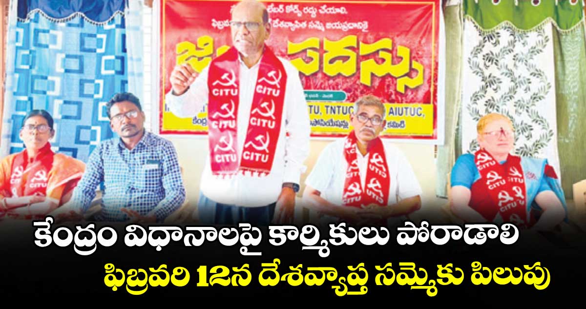 మెదక్ టౌన్, వెలుగు: కేంద్ర ప్రభుత్వ కార్మిక వ్యతిరేక విధానాలపై పోరాడాలని సీఐటీయూ రాష్ట్ర అధ్యక్షుడు చుక్క రాములు పిలుపునిచ్చారు. వీబీజీ రాంజీ, విత్తన చట్టం రద్దుకు ఫిబ్రవరి 12న దేశవ్యాప్త ఉద్యమం చేస్తామని తెలిపారు.