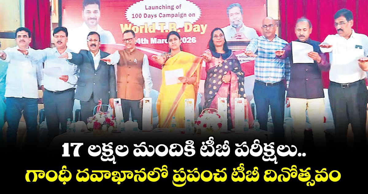 పద్మారావునగర్, వెలుగు: ప్రపంచ టీబీ దినోత్సవం సందర్భంగా సికింద్రాబాద్ గాంధీ మెడికల్కాలేజీలోని అలుమ్ని ఆడిటోరియంలో మంగళవారం ‘100 రోజుల టీబీ ముక్త్ భారత్ అభియాన్' కార్యక్రమాన్ని ఆరోగ్యం, కుటుంబ సంక్షేమ శాఖ డైరెక్టర్ ఎస్. సంగీత సత్యనారాయణ ప్రారంభించారు. ఆమె మాట్లాడుతూ.. తొలి విడతలో17.09 లక్షల మందికి టీబీ నిర్ధారణ పరీక్షలు నిర్వహించామని, నిక్షయ్ పోషణ్ యోజన ద్వారా కోట్లాది మందికి పోషకాహారం అందించామన్నారు. టీబీ లక్షణాలున్న వారికి ఉచిత పరీక్షలు, మందులు అందిస్తున్నామన్నారు.