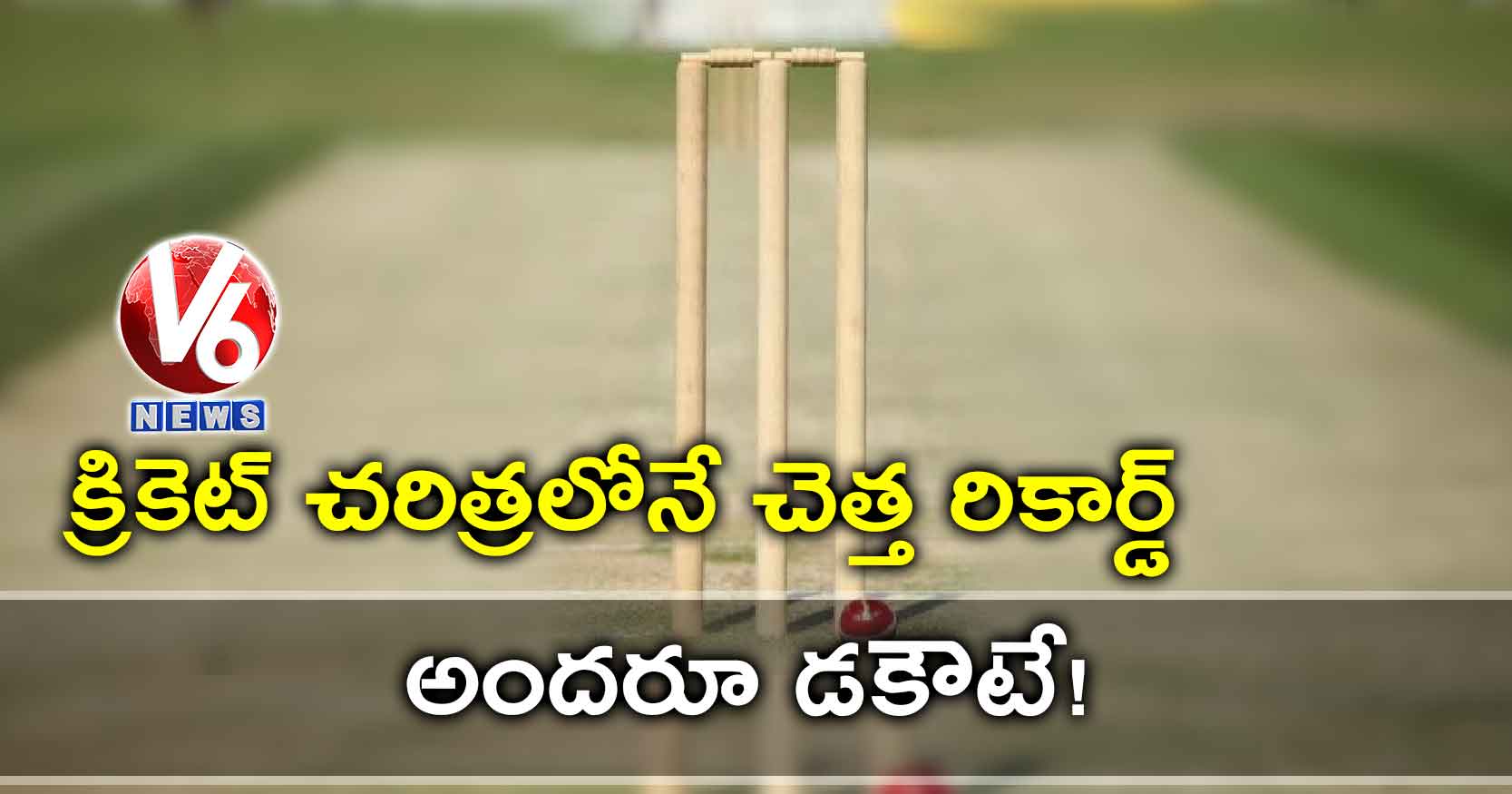 ముంబై: క్రికెట్ చరిత్రలోనే ఇప్పటి వరకు కనీవిని ఎరుగని.. కనీసం ఊహకు కూడా అందని ఘటన చోటుచేసుకుంది. టీమ్ టీమంతా డకౌట్ అవ్వడమే కాకుండా ఎక్స్ట్రాల రూపంలో వచ్చిన 7 పరుగులతో 6 ఓవర్లలోనే కుప్పకూలి.. 754 రన్స్తేడాతో ఓడిపోయింది. ముంబైలోని హారిస్ షీల్డ్ అండర్–16 స్కూల్ మ్యాచ్ ఈ చెత్త రికార్డుకు వేదికైంది. ఈ ఘోర పరాభావాన్ని అంథేరీ చిల్డ్రన్స్ అకాడమీ టీమ్ మూటగట్టుకుంటే..వివేకానంద ఇంటర్నేషనల్ స్కూల్ ఊహకందని విజయాన్ని అందుకుంది. ఆజాద్ మైదాన్ వేదికగా బుధవారం జరిగిన ఈ మ్యాచ్లో తొలుత బ్యాటింగ్ చేసిన వివేకానంద స్కూల్ 39 ఓవర్లలో 4 వికెట్లకు 605 రన్స్ చేసింది.