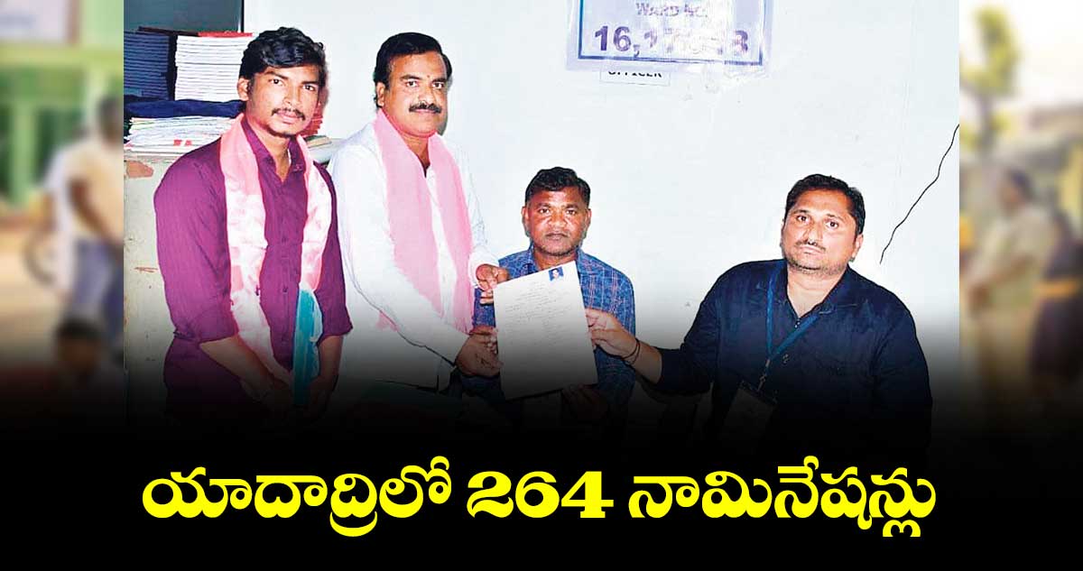 యాదాద్రి, వెలుగు: యాదాద్రి జిల్లాలోని ఆరు మున్సిపాలిటీల్లో గురువారం భారీగా నామినేషన్లు దాఖలయ్యాయి. 104 వార్డుల్లో 264 మంది నామినేషన్లను దాఖలు చేశారు. ఇందులో కొందరు రెండు సెట్ల చొప్పున నామినేషన్లు వేశారు. బీజేపీ తరఫున 70 నామినేషన్లు దాఖలయ్యాయి. కాంగ్రెస్ తరపున 101 దాఖలు కాగా బీఆర్ఎస్ తరపున 90 దాఖలయ్యాయి.